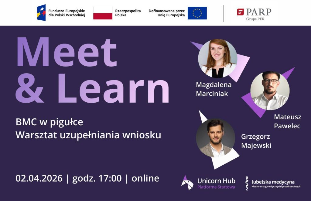 Klaster Lubelska Medycyna, jako Partner Ekosystemowy Platformy Startowej Unicorn Hub, zaprasza na bezpłatny webinar Meet & Learn online. Wydarzenie odbywa się w ramach naboru do VI rundy inkubacji w Platformie Startowej Unicorn Hub 2.0. To doskonała okazja, aby dowiedzieć się, jak świadomie rozwijać projekty medyczne i skutecznie aplikować o wsparcie.